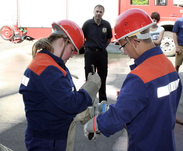 9 Jugendliche wurden in diesem Jahr in der Jugendflamme 2 geprüft. Es wurde viel geübt und trainiert und so konnten alle mehr oder weniger entspannt dem Abnahmetag entgegen sehen. Morgens um 9:30Uhr trafen sich alle Teilnehmer und Helfer im Feuerwehrhaus um alles vorzubereiten. Um 10:00Uhr kam dann Wolfgang um die Jugendflamme abzunehmen. Alles lief reibungslos und so konnten am Ende des Tages alle ihre Anstecknadeln in Empfang nehmen. Geprüft wurde: Fahrzeugkunde am LF 16, wo befindet sich was im Auto und für was genau wird es gebraucht. Das Kuppeln von Schläuchen mit Hilfe von Kupplungsschlüsseln, wie genau ist die Handhabung, welche Unfallverhütungsvorschriften muss ich beachten. Der Aufbau des Unterflurhydranten, mit Erklärung was man genau tut und worauf man achten muss. Damit man für später im Ernstfall weiß wo man anpacken muss.