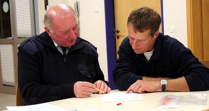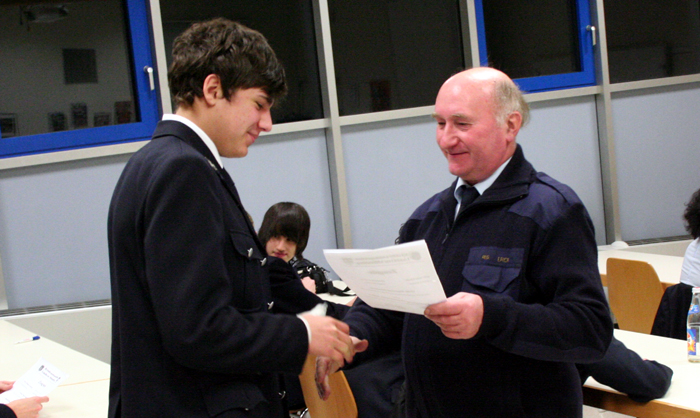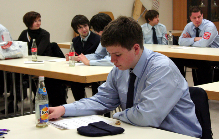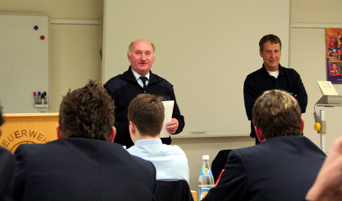 Am 02.12. war es dann soweit: Die schriftliche Prüfung stand an. Wozu dient der Spreizer? Was brennt bei einer Flüssigkeit? Welcher Trupp verlegt die C-Schläuche? Diese drei und 47 weitere Fragen lösten die frisch gebackenen Blaukittel mit Bravour. Kreisbrandinspektor Erich Reis und seine Ausbilder zeigten sich sehr erfreut vom erfolgreichen Abschneiden des Lehrgangs. „Alle haben in den Prüfungsbögen mindestens 40 Punkte von maximal 50 erreicht“, so Reis.