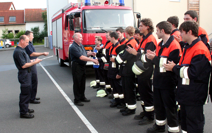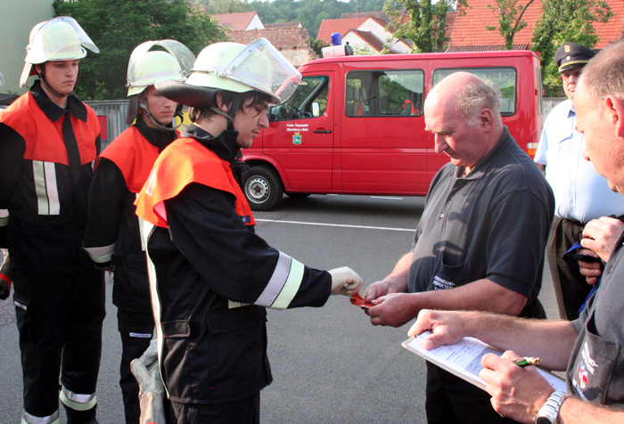 Die zwei angetretenen Gruppen absolvierten die Prüfung am Freitag, den 18.06.10 unter den kritischen Augen der drei Schiedsrichter Kreisbrandmeister Franz Stuckert, Kreisbrandmeister Josef Vornberger und 2. Kommandant Roland Reis mit Erfolg.
