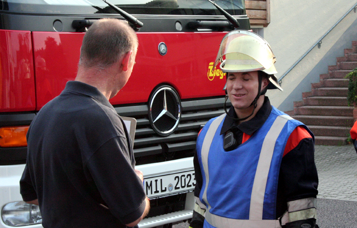 Die Schiedsrichter zeigten sich bei der Verleihung der Abzeichen mit den erzielten Ergebnissen sehr zufrieden und auch Kreisbrandrat Meinrad Lebold lobte den Einsatz der Obernburger Wehr. Zur Vervollständigung der zweiten Gruppe fungierten Patrick Axt, Niels Kalinowski, Benedikt Reis, Johannes Schmitt und Daniel Spilger als Auffüller und übten, obgleich sie als Kandidaten der Stufe 1 in Gruppe 1 gesetzt sind, alle möglichen Positionen. Kommandant Martin Spilger und Vereinsvorsitzender Heiko Amrhein freuten sich mit ihren Manne über den Erfolg. Mit dem anschließenden Sommerfest des Feuerwehrvereins ließen die Blaukittel die anstrengende Woche ausklingen.