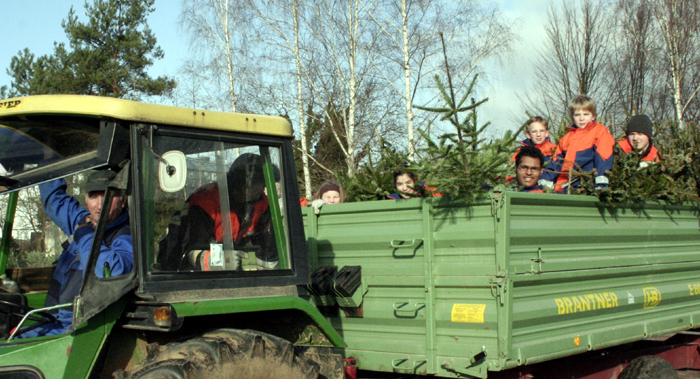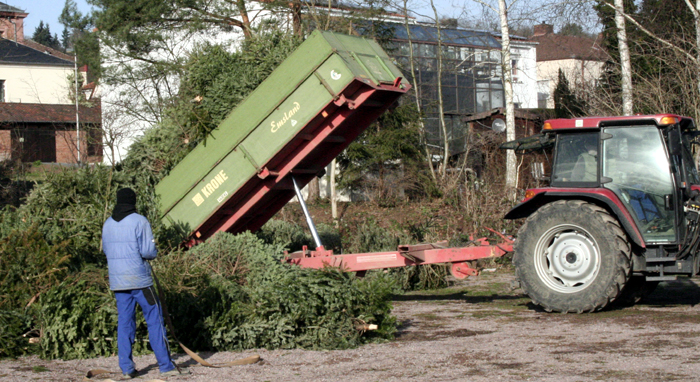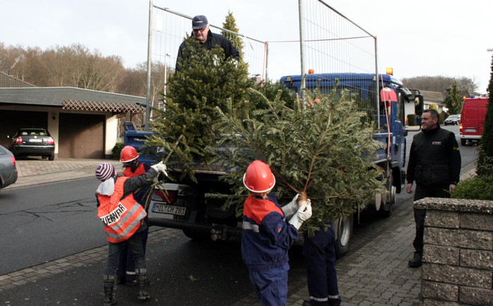 Einsammeln der Christbäume in Obernburg