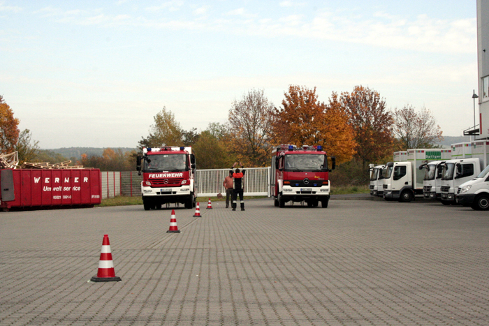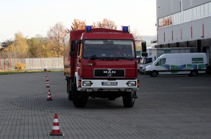 Am 17.09. auf dem Firmengelände der Dualogis GmbH des Industriecenters Obernburg, und am 29.10.2011 im Anlieferbereich des Sparmaxx in Großwallstadt, absolvierten die Feuerwehrleute aus Obernburg und Eisenbach ein solches Training. In Zusammenarbeit mit der Fahrschule Großkinsky übten die Blaukittel das Rangieren auf engstem Raum, Rückwärts- und Slalomfahren, Brems- und Ausweichmanöver, sowie das Fahren auf nasser Fahrbahn.