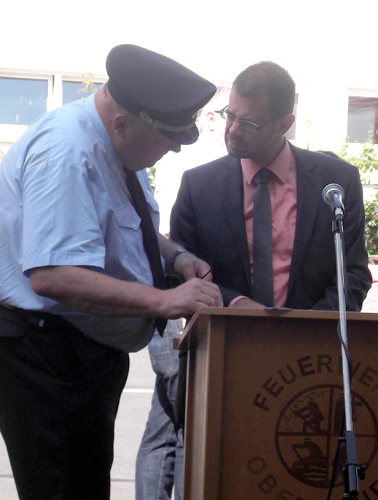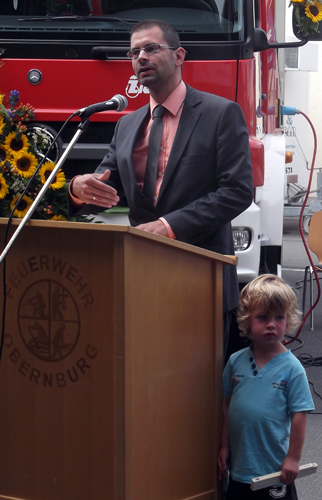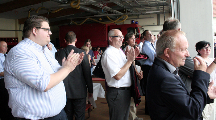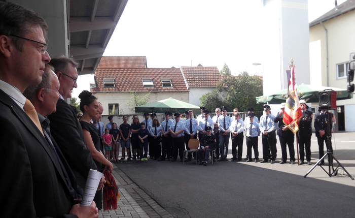 Spilger dankte allen an der Fahrzeugbeschaffung beteiligten Stellen für die konstruktive Zusammenarbeit. Einen besonderen Dank richtete er an seine Mannschaft. „Nach der Auslieferung des LF20 absolvierten die Feuerwehrfrauen und – männer mit großer Begeisterung umfangreiche Ausbildungs- und Übungstermine mit dem neuen Einsatzmittel. Diesem ehrenamtlichen Einsatz gebührt großer Dank“, so Spilger.