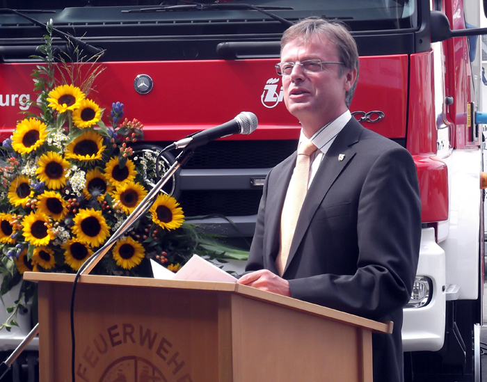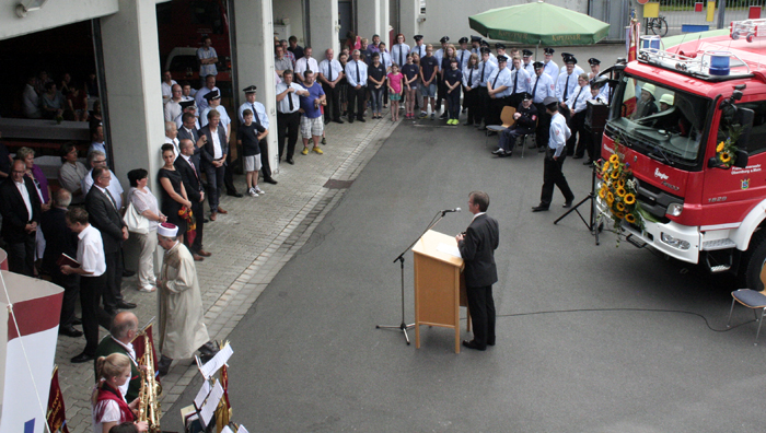Abschließend überbrachten Altbürgermeister Walter Berninger, Landrat Jens Marco Scherf, MdB Alexander Hoffmann, MdL Berthold Rüth und MdL Dr. Hans Jürgen Fahn ihre besonderen Grüße. Im Anschluss an den offiziellen Veranstaltungsteil hatten alle Gäste die Möglichkeit das Neufahrzeug und seine Beladung in Augenschein zu nehmen.