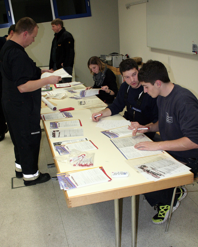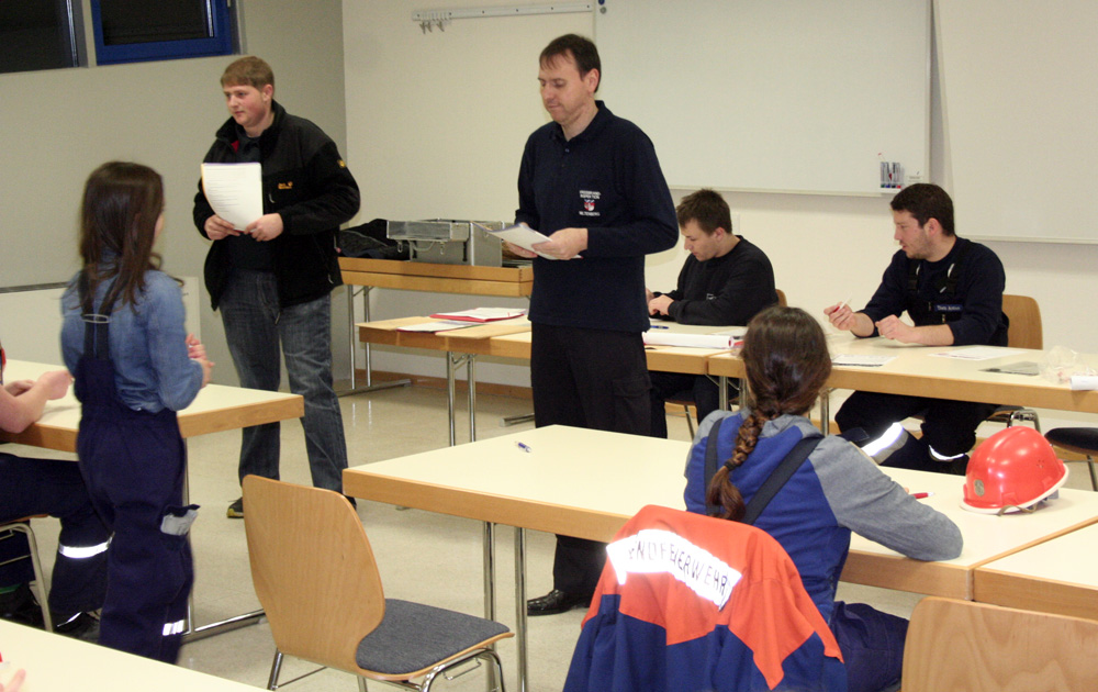 Mit kritischen Augen überzeugten sich Kreisjugendwart Wolfgang Schmitt und seine Schiedsrichterhelfer vom Kenntnisstand der Feuerwehrjugendgruppen. Der Wissenstest trägt dem unterschiedlichen Alter und Kenntnisstand der Anwärter Rechnung. Der Teilnehmer beginnt mit der Stufe 1 und kann in den Folgejahren die höheren Stufen absolvieren. Alle Mädchen und Jungs bestanden die Prüfung und erreichten die jeweils nächste Stufe.