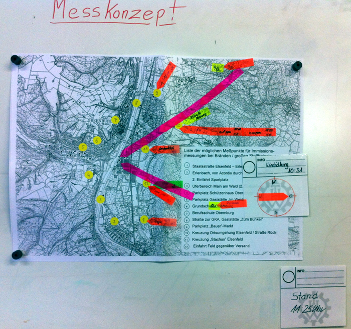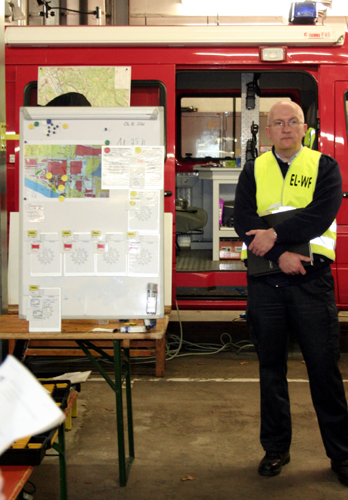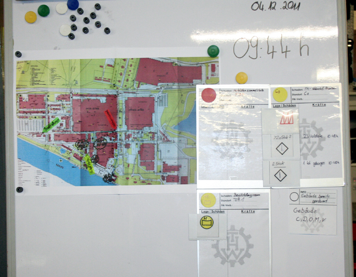 Dieses Schadensszenario wurde am 04. Dezember 2011 angenommen und im Einsatzprotokollsystem für Katastrophenfälle, sowie großflächige Gefährdungslagen und andere koordinierungsbedürftige Ereignisse unterhalb der Katastrophenschwelle beübt. Um 09.45 Uhr wurden die Einsatzkräfte fiktiv über EPSweb alarmiert. In Zusammenarbeit mit der WF ICO nahmen die UG-ÖEL Nord der Feuerwehr Obernburg, Das THW Miltenberg und das THW Obernburg die Arbeit vor Ort auf und richteten die Einsatzleitung ein, sodass KBM Josef Vornberger die Funktion des Örtlichen Einsatzleiters übernehmen konnte. Zeitgleich nahm die Führungsgruppe Katastrophenschutz mit den Fachberatern von THW, Polizei und Feuerwehr im Lagezentrum des Landkreises Miltenberg ihre Arbeit auf.