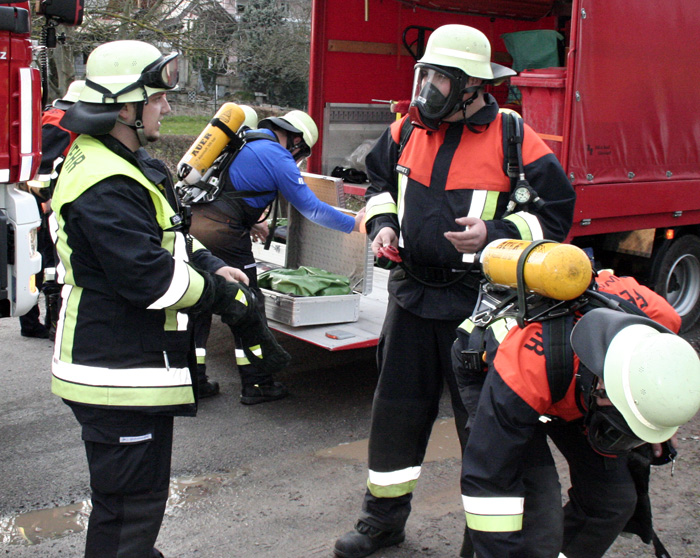 Die FF Wörth rüstete 3 Trupps (je 2 Mann) mit CSA aus. Diese unterstützen die ersten beiden CSA-Trupps bei der Menschenrettung. Desweiteren übernahmen sie die Abdichtung der lecken Gasflasche mit Abdichtmaterial aus dem GWG und führten Chlorgasmessungen mittels Prüfröhrchen durch.