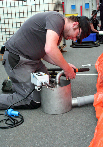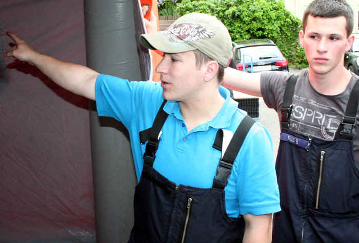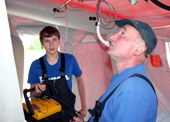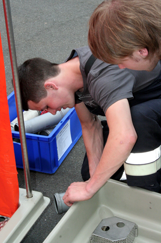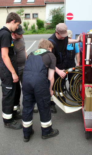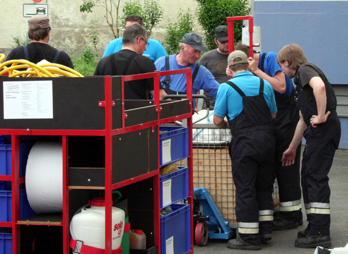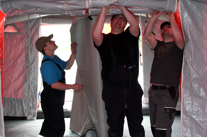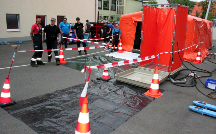 Aufbau Ausrüstung Dekontamination Personen am 14.05.2011 im Gerätehaus Obernburg