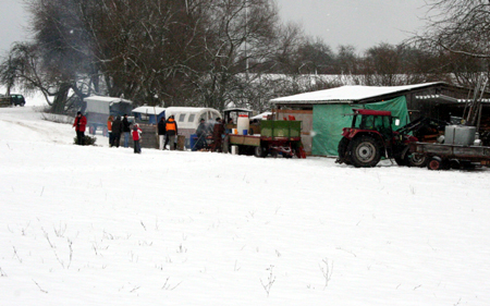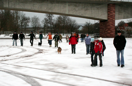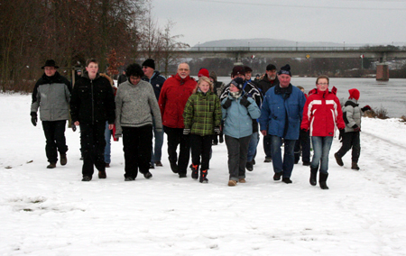 Der Winter 2009/10 war sehr schneereich, und so bot das Wetter mit Schnee und Eis am Samstag, den 30.01.2010 genau die passende Landschaft für die Winterwanderung des Feuerwehrvereins. Fast 60 Mitglieder starteten um 11 Uhr am Feuerwehrhaus mit Roberts Pferdekoppel im Seffengraben als Ziel. Erich Reis hat für diesen Tag wieder eine neue Route ausgesucht. Über die Mainanlage zur Wehrinsel an der Mümling stapften die Teilnehmer durch Eis und Schnee. Der Weg lief durch Eisenbach, entlang des Lauterhofgrabens bis hinauf zum Seffengraben. Eineinhalb Stunden dauerte der anspruchsvolle Marsch und mit Erreichen des Ziels setzte starker Schneefall ein. So kam den Wanderern das Lakefleisch und die heißen Getränke sehr gelegen.