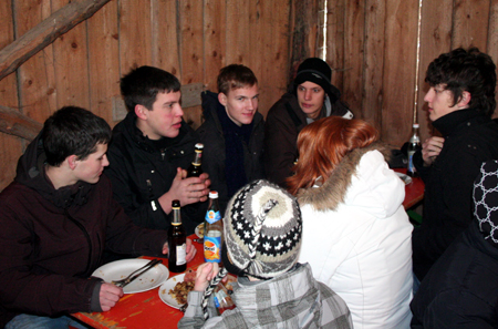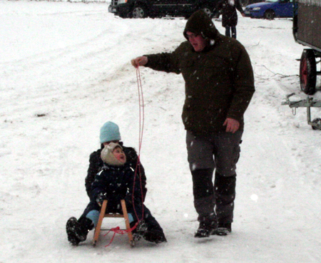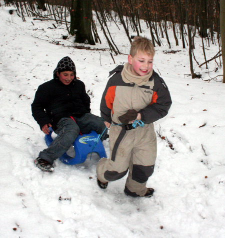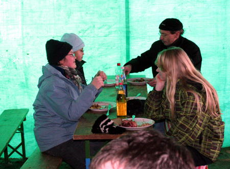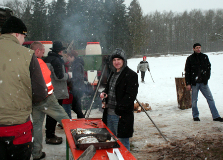 Das Helferteam um Stefan Stahl und Robert Schmitt hatten bereits am Morgen alle Vorkehrungen getroffen und bis zur Mittagszeit Lakenfleisch, Glühwein und weitere Speisen zur Stärkung bereitet. Die Blaukittel erlebten einen tollen Tag im winterlichen Seffengraben und auch der Spaß kam nicht zu kurz. Seilziehen, Stockbrotbacken und Stiefelwerfen, sorgten für Kurzweile. Mitten in die Veranstaltung platzte die Nachricht von der Geburt eines neuen Feuerwehrmanns. Feuerwehrfrau Kathrin Ackermann gebar in der Nacht zuvor den kleinen Daniel. Die Wehrmänner ließen es sich nicht nehmen, den neuen Erdenbürger und Feuerwehrmann hoch leben zu lassen.
